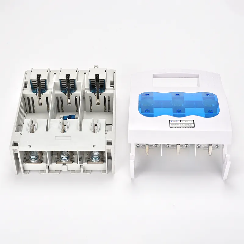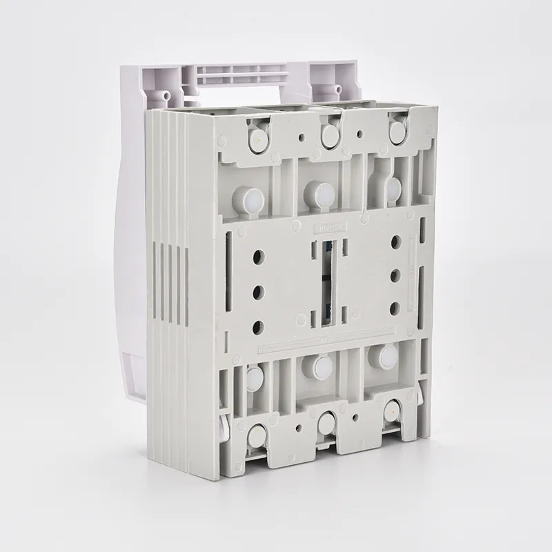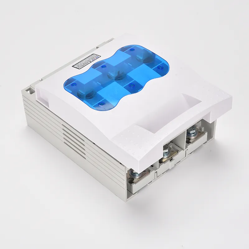 100a споениот 3-полен изолаторски прекинувач е конструиран со монтажна основа, фиксни контакти, подвижни контакти и сечило со шарки. Кога е затворено, ножот контактира со фиксните терминали за да ја заврши електричната патека. Во постоечките дизајни, склопувањето и расклопувањето може да бидат незгодни, а замена на осигурувачите често бара повторени прилагодувања поради ограничената компатибилност со механизмот на рачката за работа.